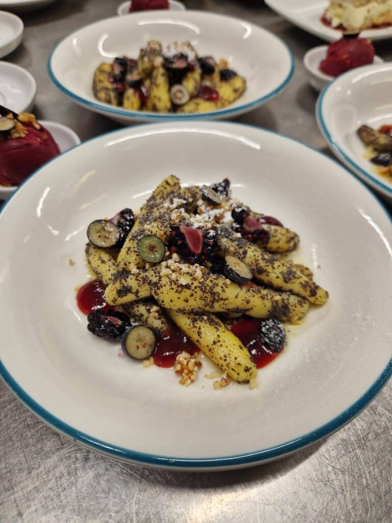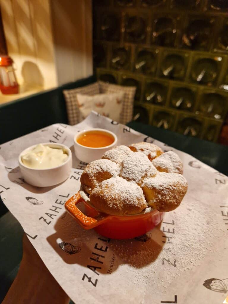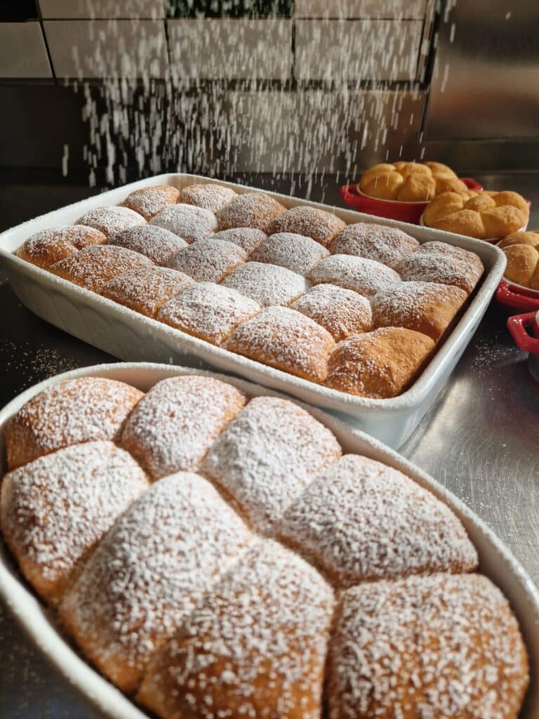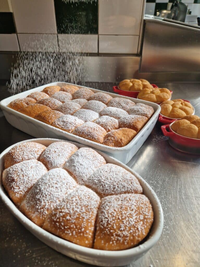 What we do preserve are our traditional recipes. For example, the mother Cornelia bakes the Buchteln according to one of our old traditional recipes, and the son Florian reinterprets the recipe. Note: order the Junior Buchteln (smaller Buchteln with dip).