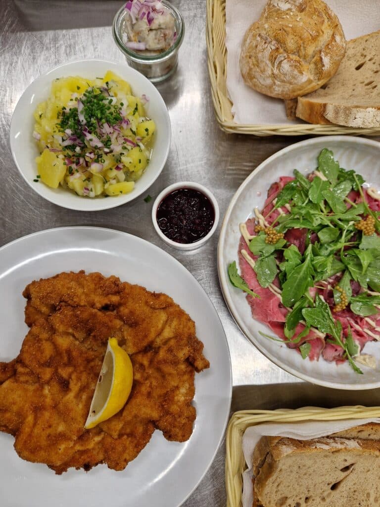 Enjoy authentic Viennese cuisine, lovingly prepared according to traditional recipes that bring the flavours of the region to the plate. Look forward to traditional Heuriger delicacies such as crispy roast pork, homemade spreads, fresh salads and hearty Brettljausen platters – accompanied by fine wines from our own vineyard.