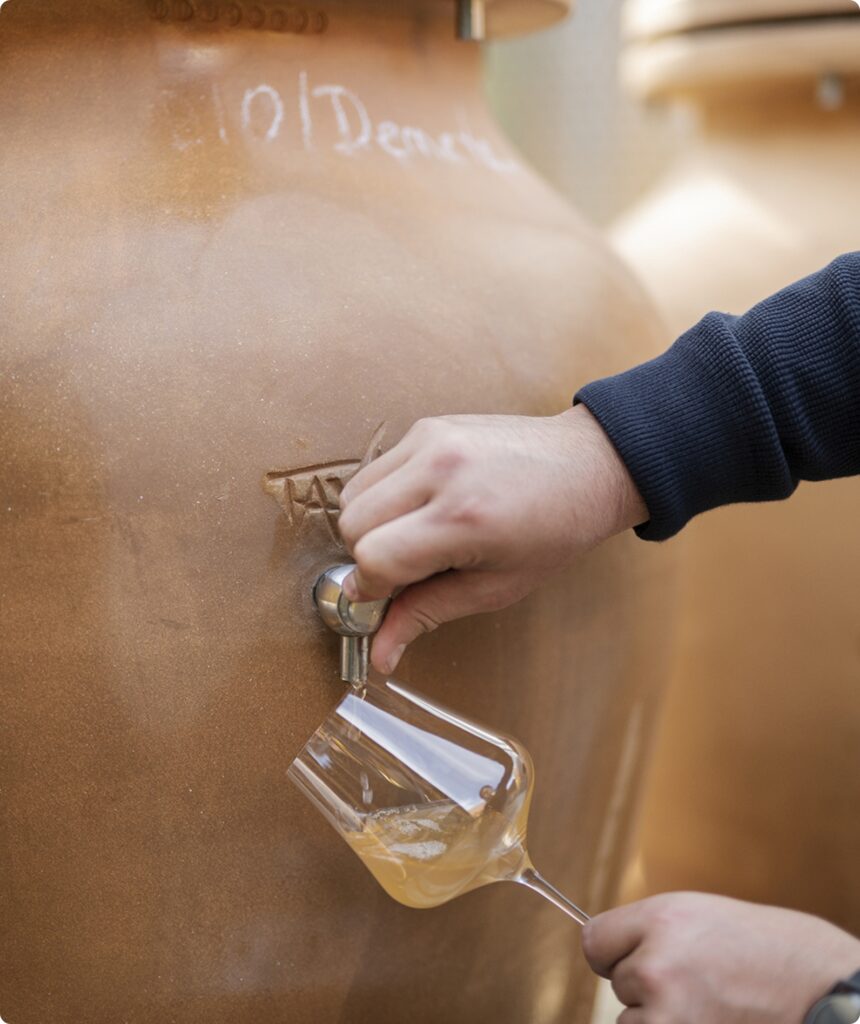 A vineyard needs a lot of care and feeling for the vines. We cultivate our vines according to the biodynamic guidelines of Demeter. We always rely heavily on manual work. We are also committed to a high level of biodiversity through special compost and species-rich planting in each row of vines. At the end of the rows, we cultivate fruit varieties and roses that promote our beneficial insects and also beautify the landscape.