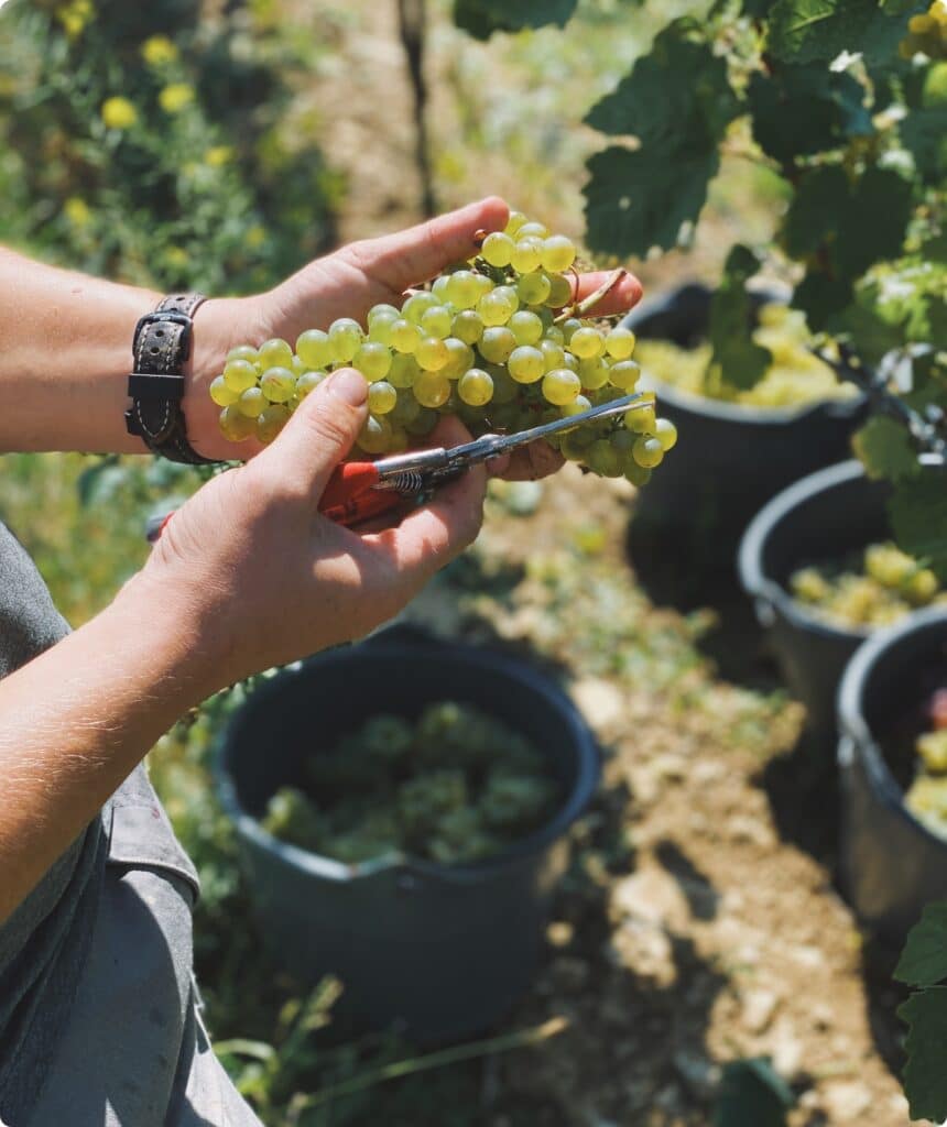 The grape harvest begins when the sun, soil, and vines have done their work and the grapes are ripe. And because we only harvest when the weather is at its best, this happens at the end of August at the earliest, but usually in September. We then harvest the grapes 100% by hand within a few weeks. Our quality standards require experienced, trained staff who pay particular attention to careful handling. Harvesting is a responsible task for us. We make sure that only the best grapes go into our wine right from the harvest.
